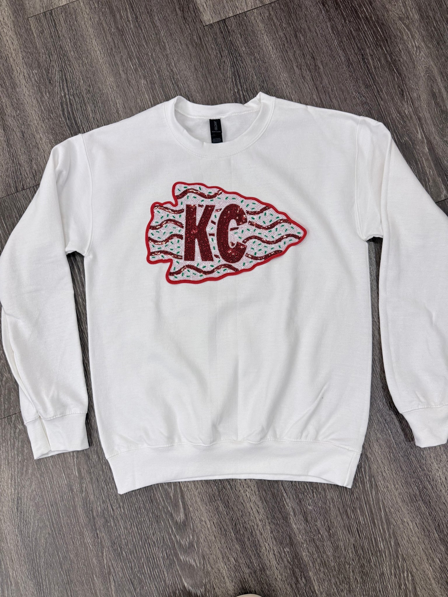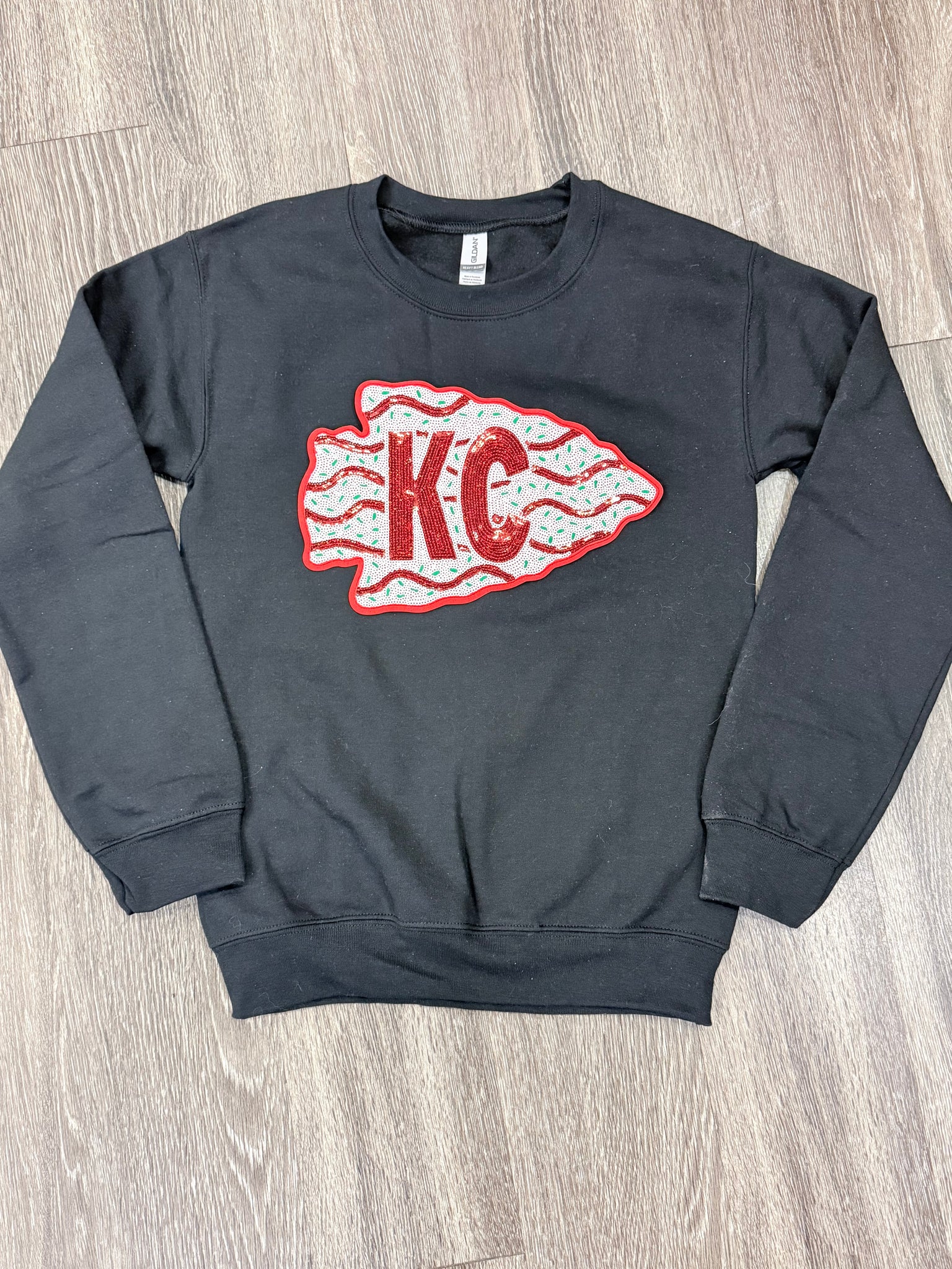 This adorable Gildan brand sweatshirt features one of our sequin patches to celebrate the holiday season and our beloved CHIEFS. Grab yours now before they’re gone for good!