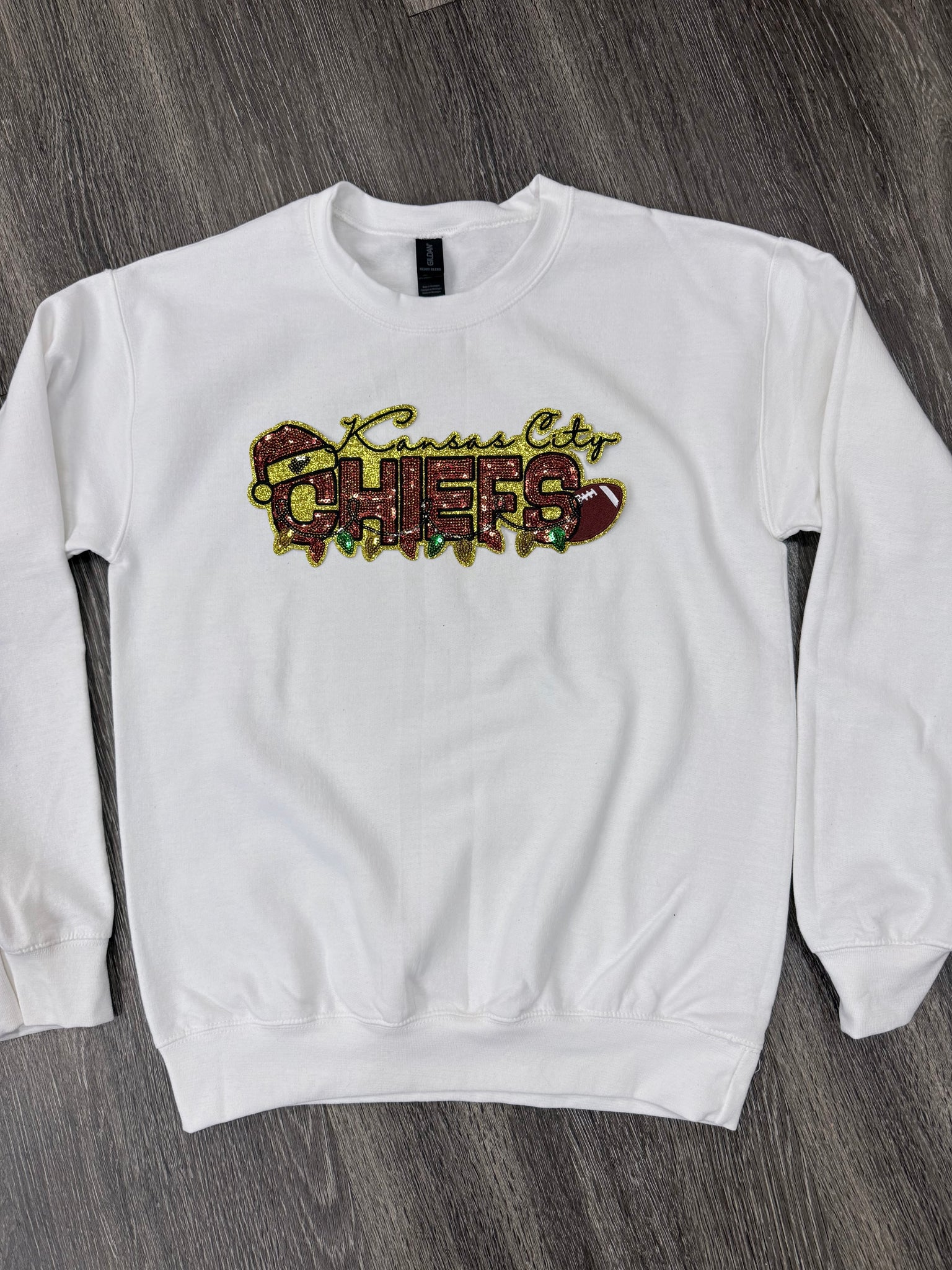 This adorable Gildan brand sweatshirt features one of our sequin patches to celebrate the holiday season and our beloved CHIEFS. Grab yours now before they’re gone for good!