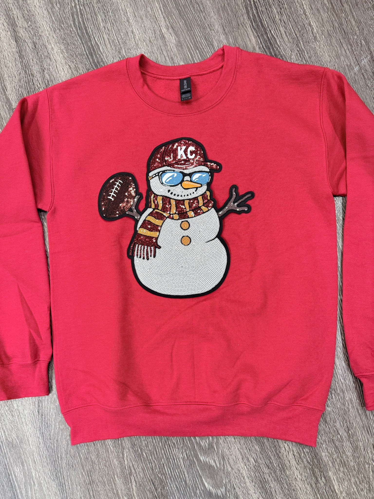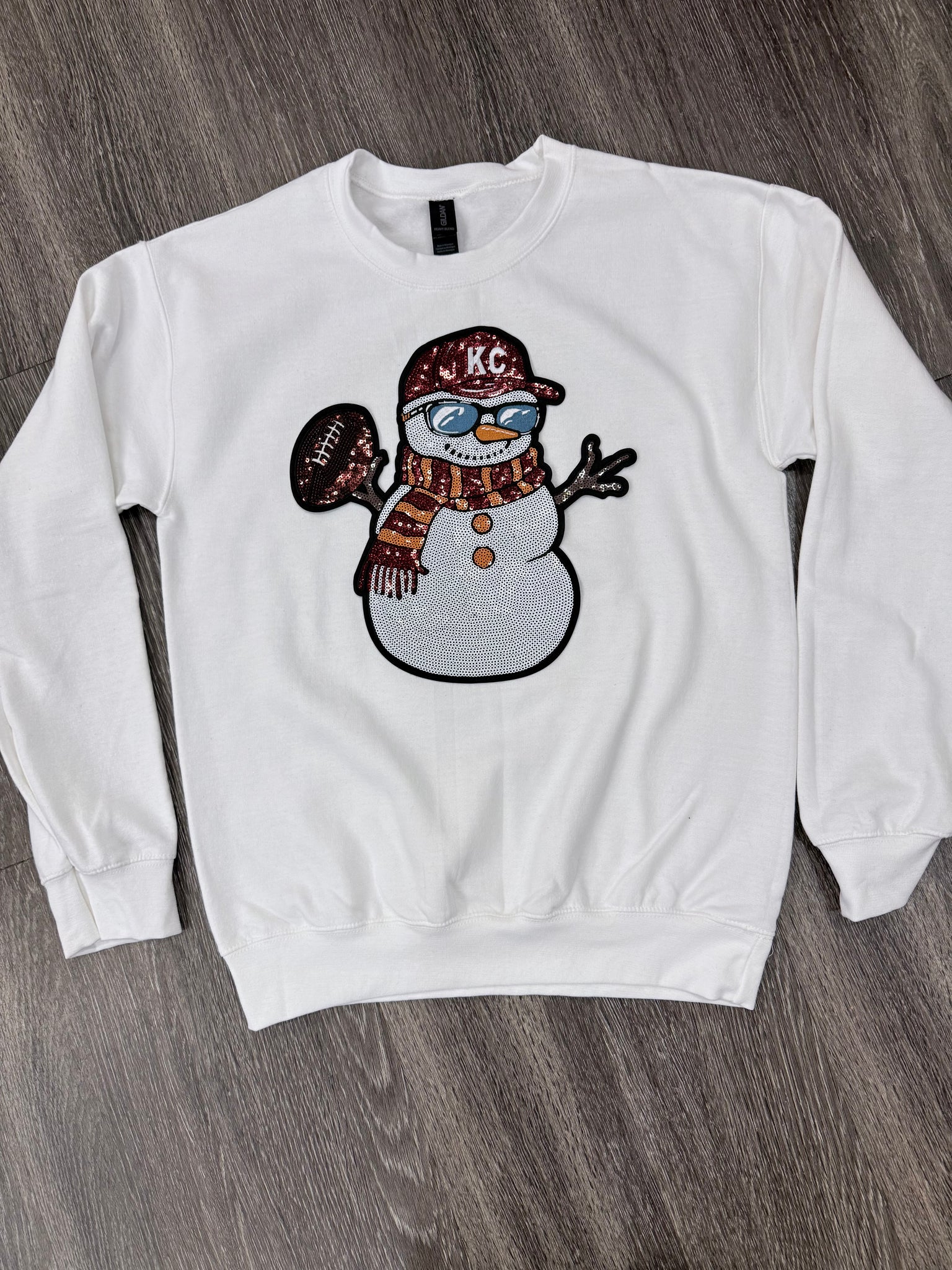 Sequin Holiday Snowman Chiefs Sweatshirt