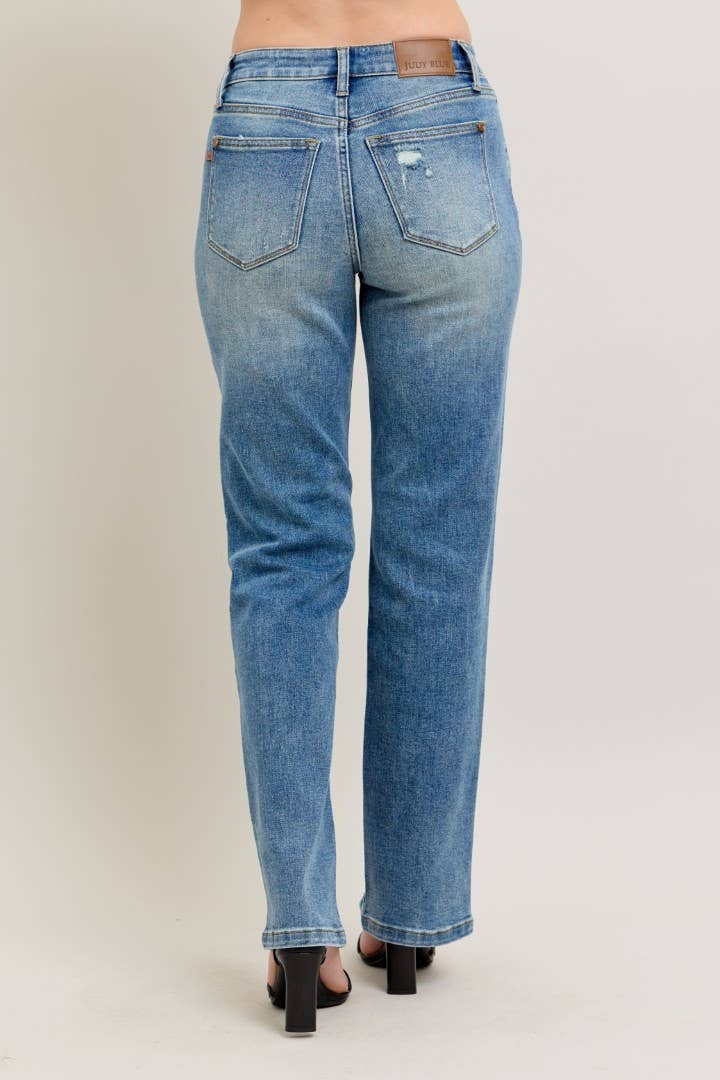 JUDY BLUE High Waisted Vintage Wash Front Seam & Slit Straight