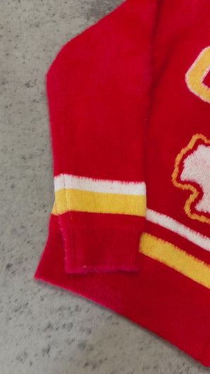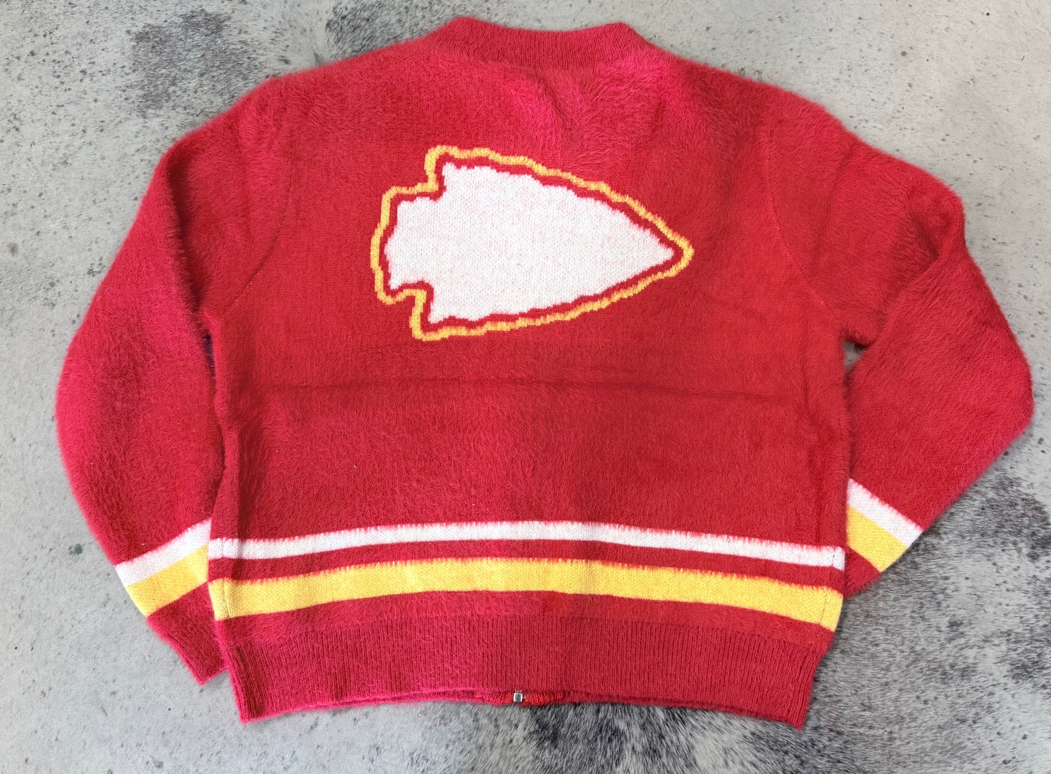 Experience ultimate coziness in our Chiefs Fuzzy Zip-Up Sweater. With its super soft and fuzzy fabric, you'll feel like you're wrapped in a cloud. Designed to fit sizes 0-16, it's perfect for everyone. But hurry - this exclusive design won't last long!