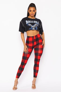 Women's Plaid Brushed Knit Leggings 5BP10082-PD