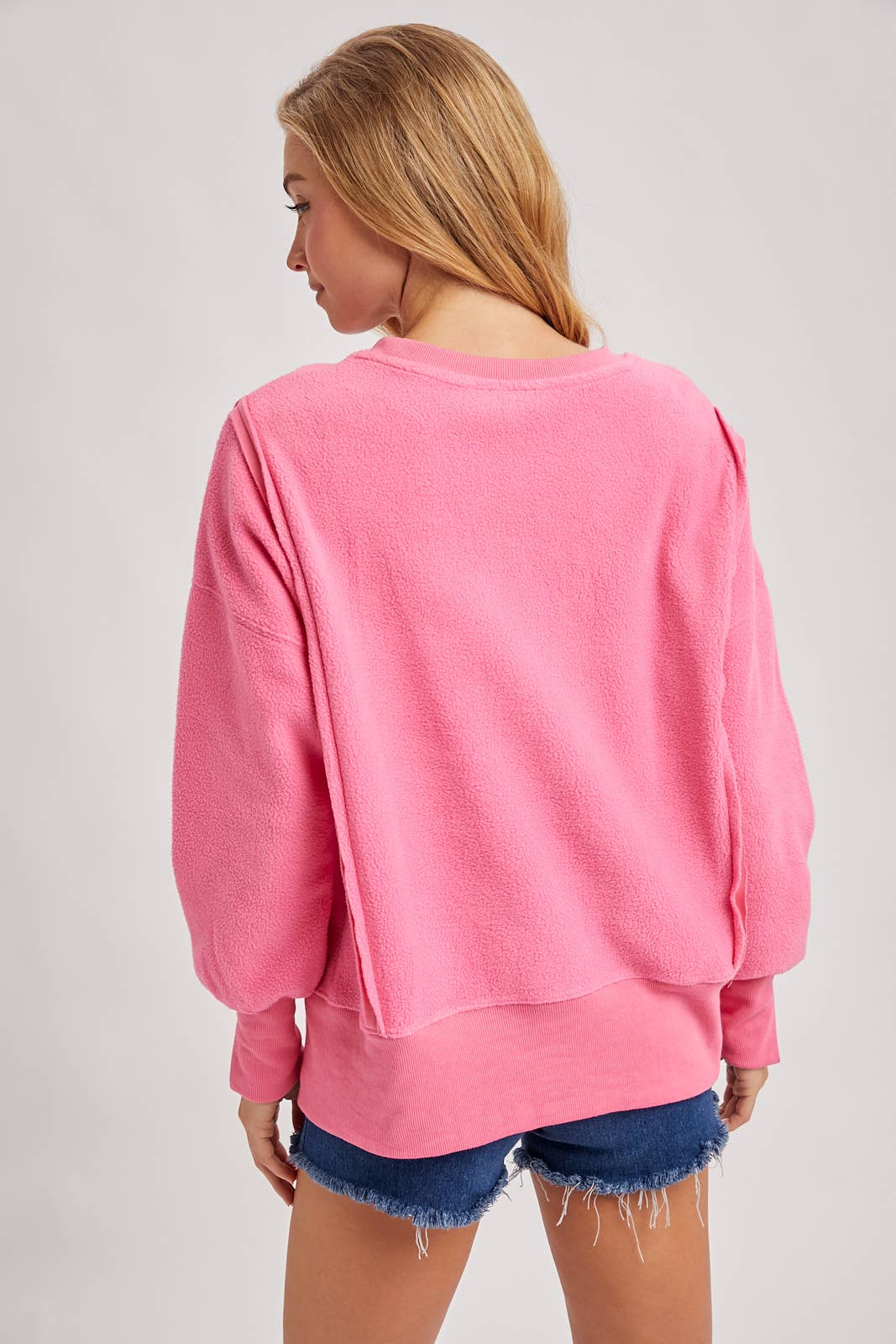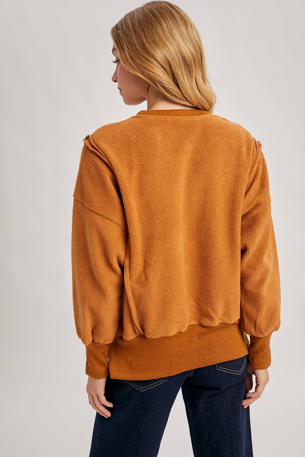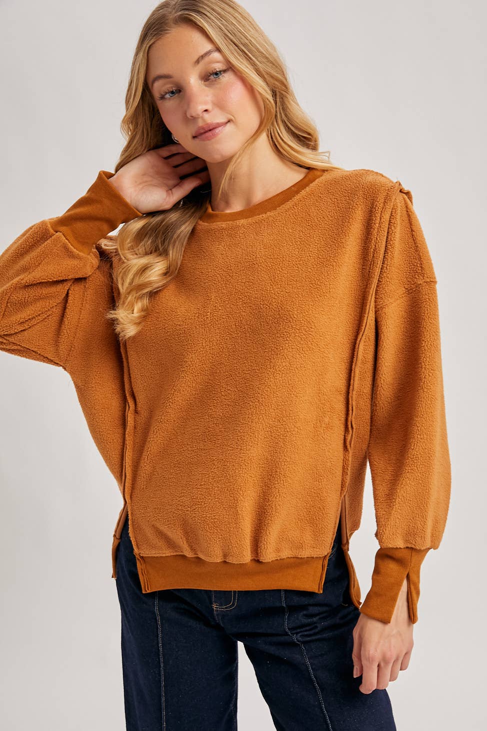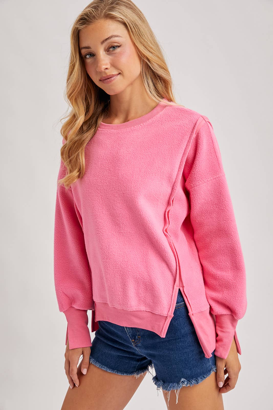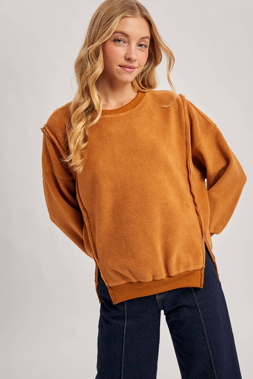 Fleece pullover featuring a crewneck, dropped shoulder, reverse seam detail, vented ribbed hem&cuffs, relaxed fit. -Model is 5'9" and wearing a Small.