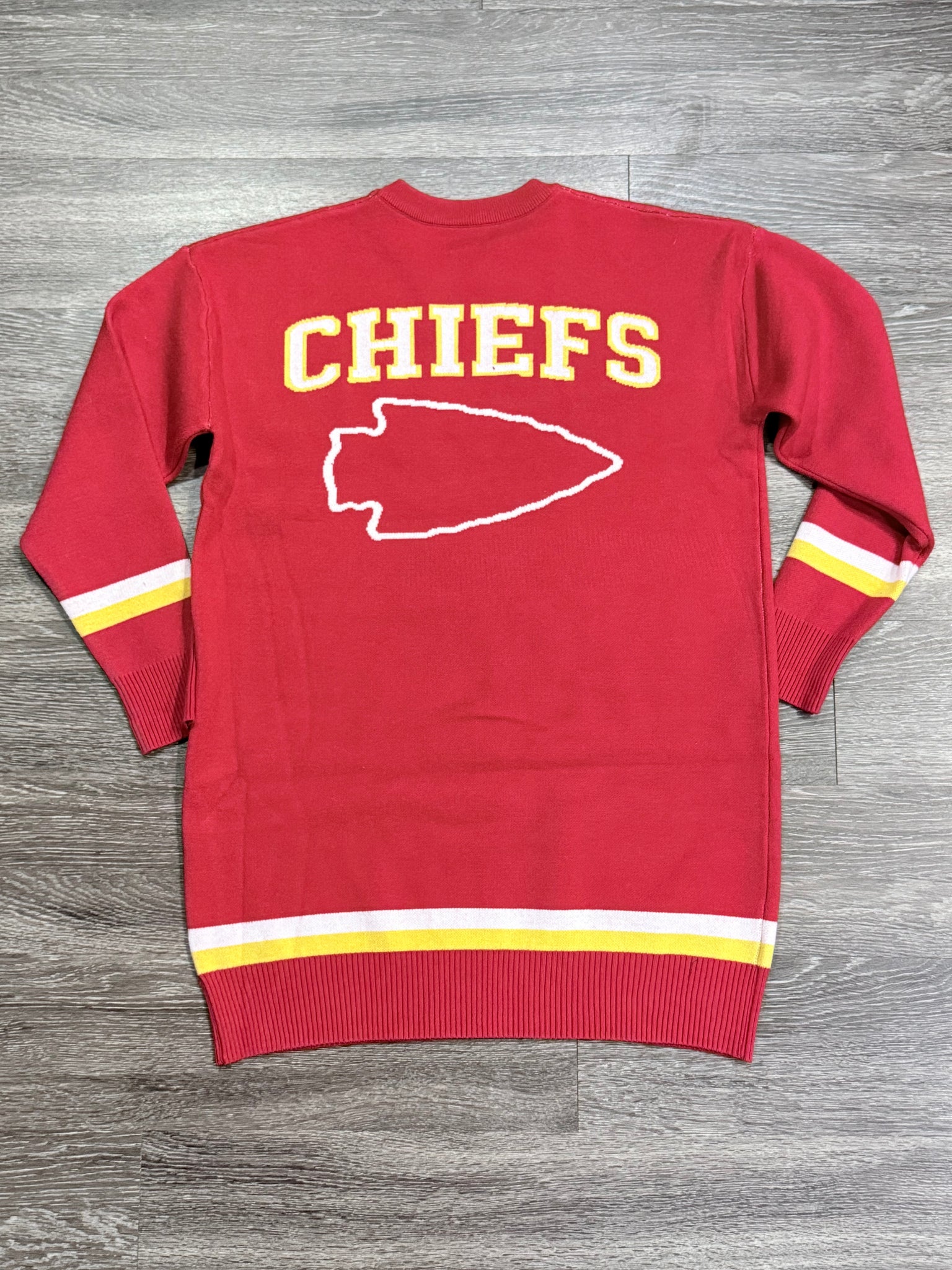 Stay cozy and stylish this football season with our exclusive Kansas City Chiefs Sweater Dress from Maxi Laines Boutique! Made with soft materials, this dress is perfect for showing off your team pride while staying warm. Game day just got more comfortable and fashionable!